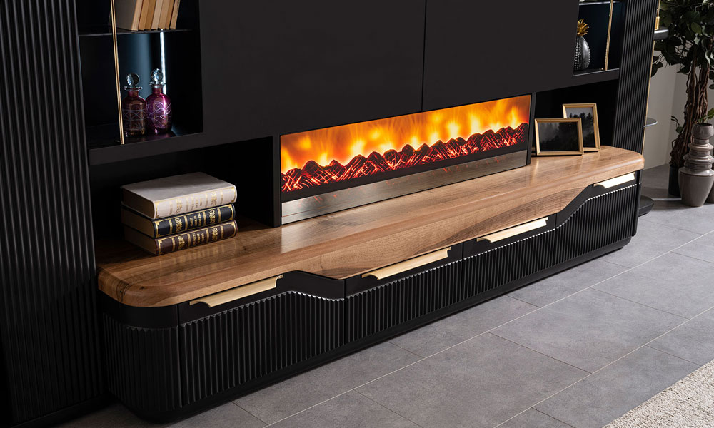 Ledli şömineli