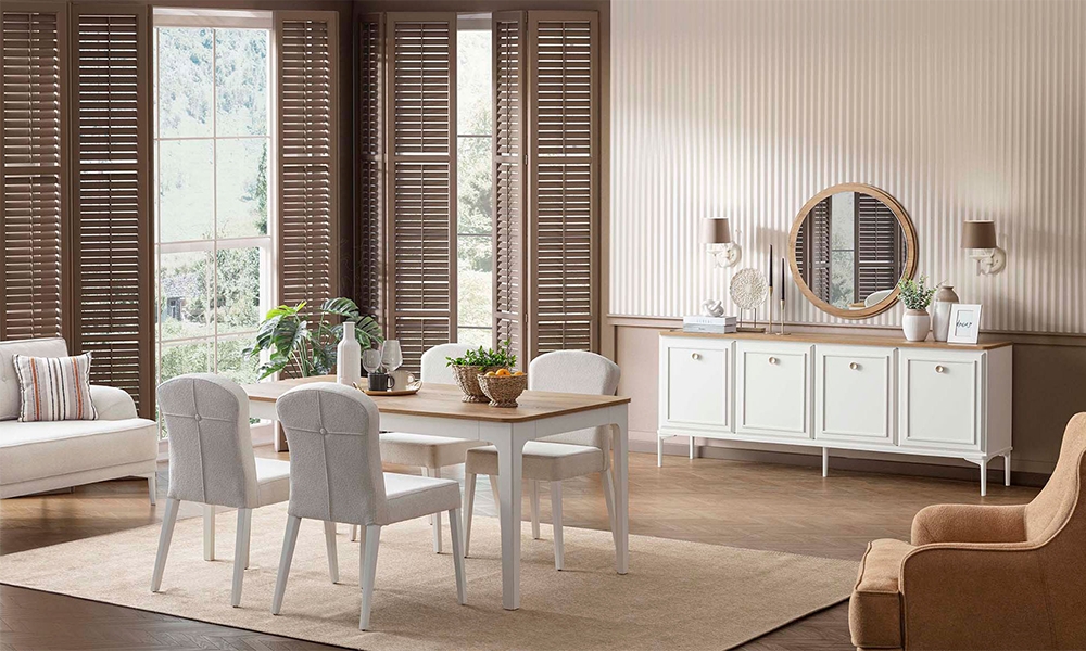Konsol ve aynası, yemek masası, 4 adet sandalye takım fiyatına dahildir.