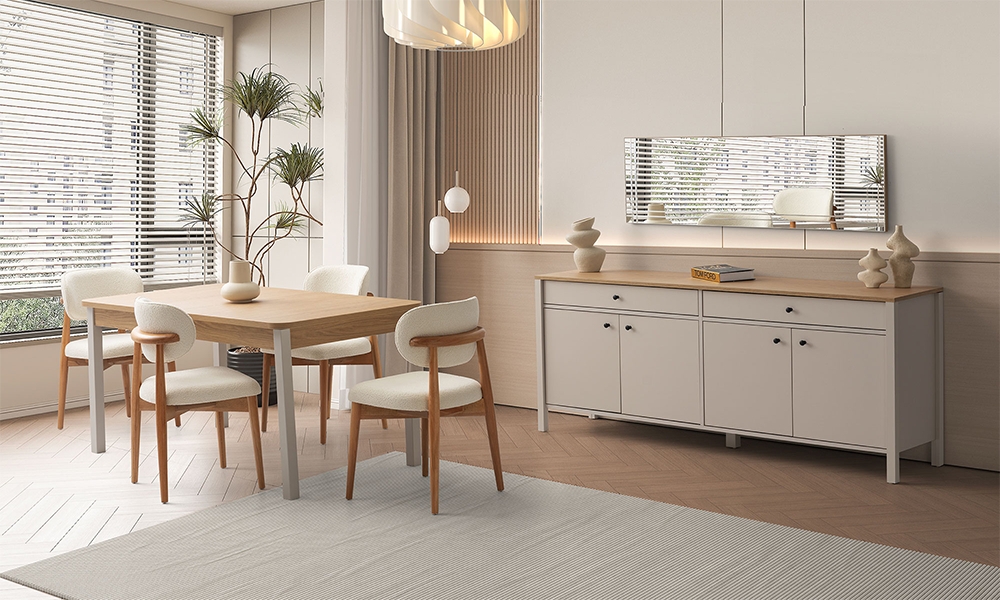 Konsol ve aynası, yemek masası, 4 adet sandalye takım fiyatına dahildir.