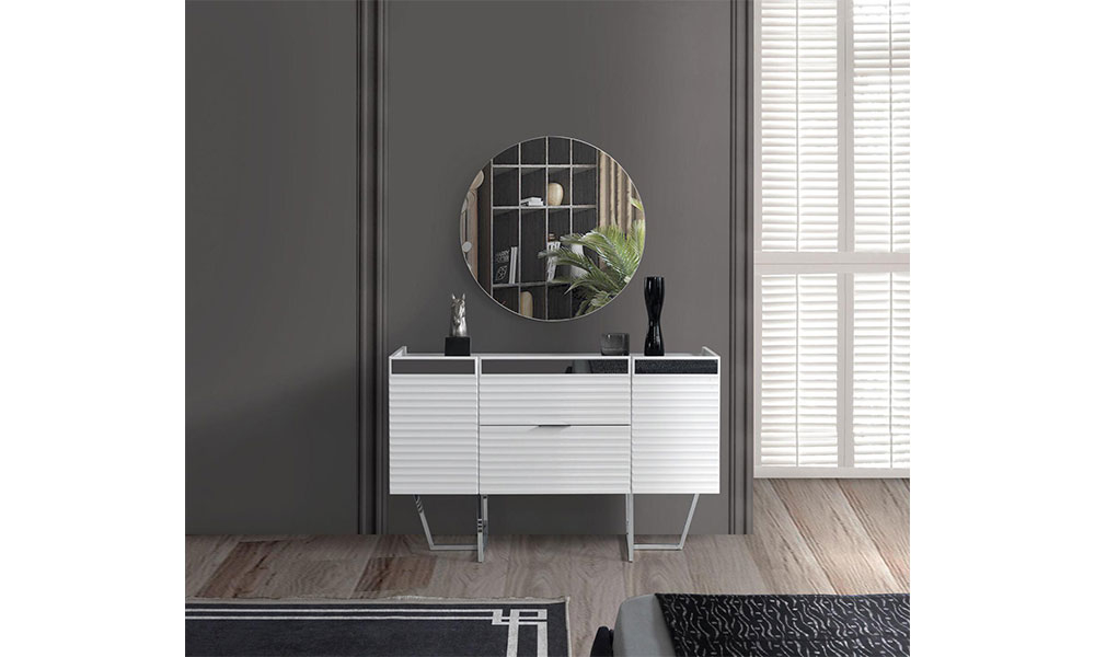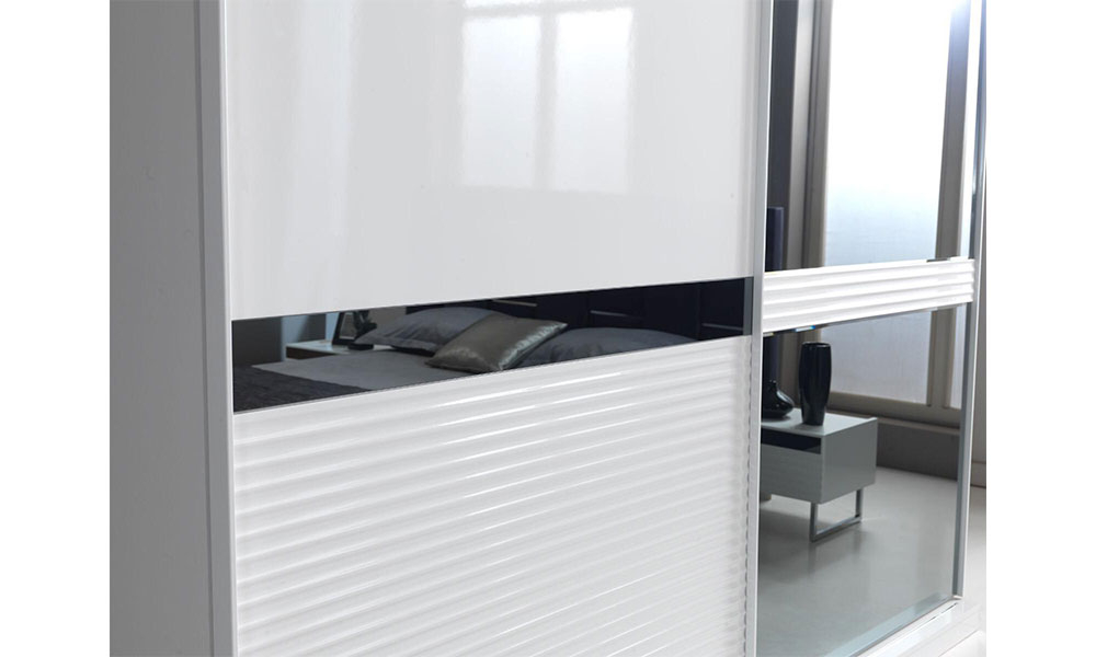 Sürgülü gardolap Karyola ve başlık Şifonyer ve ayna 2 adet komodin takım fiyatına dahildir. Takımdan istediğiniz modülü tek olarak sipariş verebilirsiniz. Mat sedef kaplama İç fonksiyonlu gardolap Minimalist modern tasarım