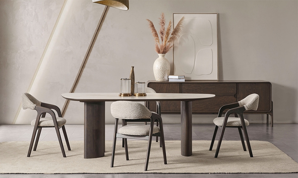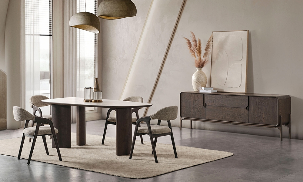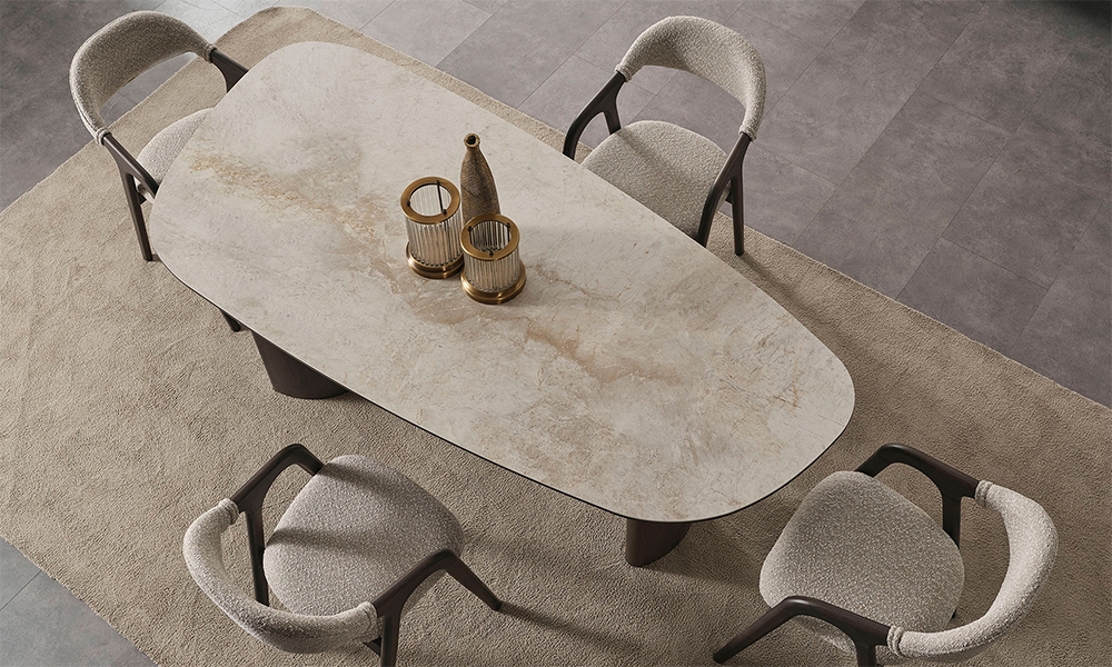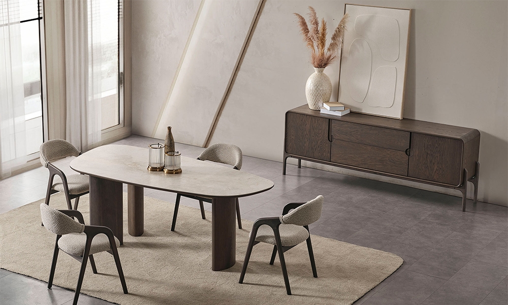 Dikdörtgen yemek masası, oval yemek masası olarak iki farklı versiyonda tasarlanmıştır.